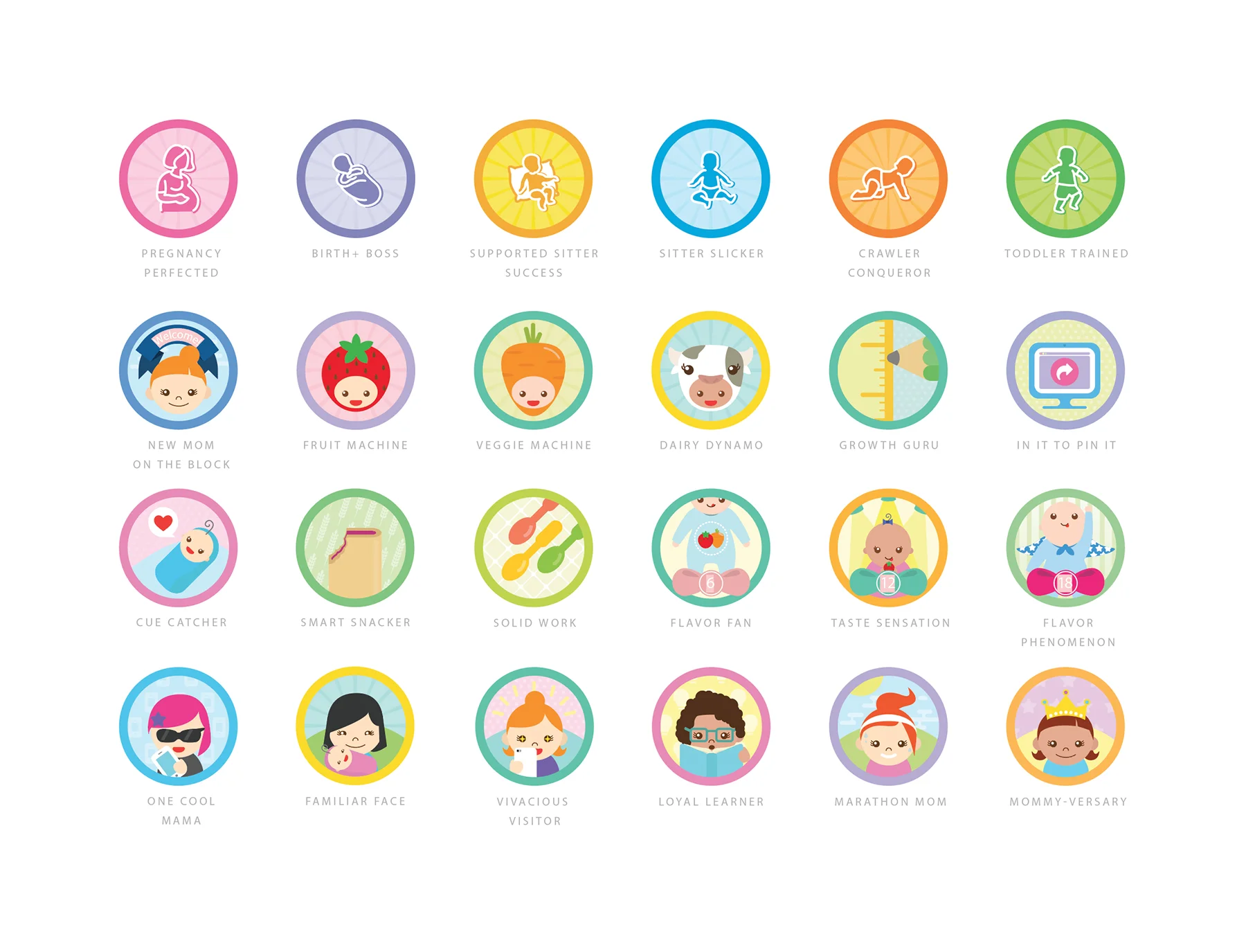 Short words of encouragement and sharable badges push mom to keep learning and practicing what she has learned.